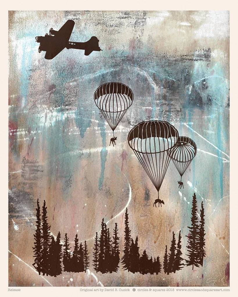 Most recently, my wife and I spent New Year’s in the San Diego area. While there, we ran into David B. Cuzick @circlesandsquaresart. I absolutely love his work. We walked away with a couple prints, a few t-shirts, and stickers. His work is clever and creative and metaphorical. It will make me happy for many years to come.